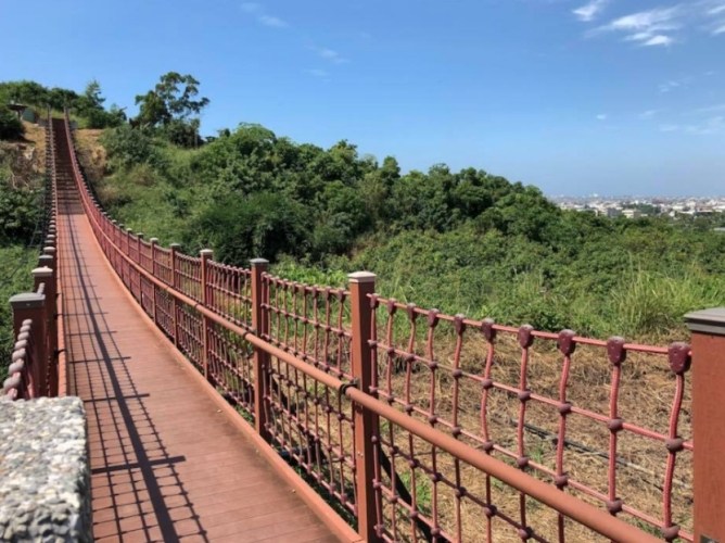 - 🎯 制高點眺望臺: 沿著步道往高處走,會抵達公園的最高點。這裡視野更廣,360度環視彌陀、永安沿海地帶,甚至能看到遠處的興達港。風很大很舒服,適合好好休息放空。旁邊還能看到一些舊軍營的痕跡,遙想當年這裡的軍事角色。