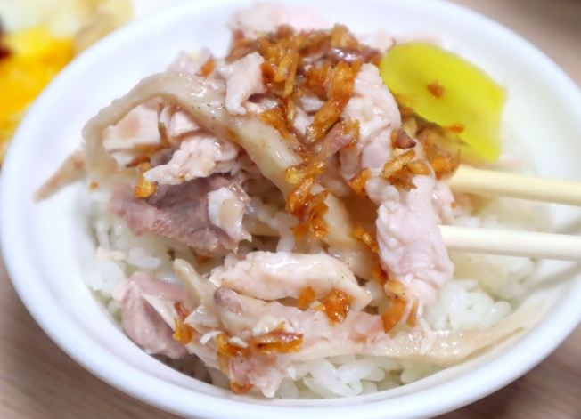 - 吃什麼? 雞肉飯是經典!雞絲給得大方,淋上香噴噴的雞油醬汁,配上醃黃蘿蔔超下飯。各種雞部位切盤(雞腿、雞翅、下水)都很新鮮,沾點特調醬油膏加薑絲。簡單的古早味。