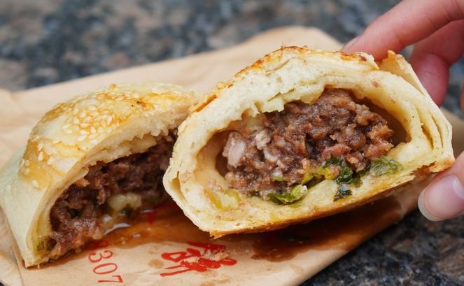 - 吃什麼? 現包現烤!圓鼓鼓的餅皮烤得焦香酥脆,咬下去瞬間...小心!滾燙的肉汁會噴出來!內餡是醃漬入味的豬後腿肉,混合爆量的鮮甜青蔥,加上濃鬱的白胡椒香氣,超級過癮。